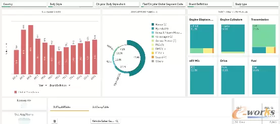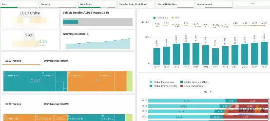 ● 数据报表经BI系统自动快速生成,节省了前期人工分析来自不同渠道的汽车销售数据的工时,包括车企在不同国家和地区的销售部门以及不同的汽车咨询公司的数据,极大的降低了员工工作量,同时提高了数据分析的效率;