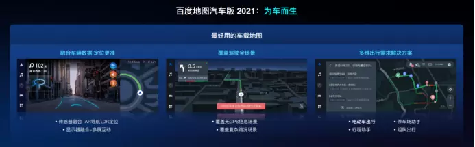 除了虚拟智能助手,智能座舱中还有另外一个关键的人机交互触点,那就是地图。百度地图汽车版将不仅仅是车载导航工具,而是为用户的出行提供完整解决方案,成为最好用的、专为车而生的车载地图。例如,传统的手机地图在用户驾驶中,经常丢失GPS信号,在高架桥、隧道里经常导航错误。而百度地图汽车版实现了和车辆硬件数据的多维融合,通过和摄像头结合的AR沉浸式导航,借助车辆的多屏显示特性,强化了驾驶中的安全引导;通过IMU芯片实现了DR定位,完美解决了GPS信号丢失和复杂路口导航错误的问题。目前,Apollo智能车联与亿咖通科技共同定制开发的百度地图汽车版已全面落地吉利汽车,首款车型星瑞将在12月完成FOTA,很快星瑞用户就将感受到百度地图汽车版带来的领先体验。