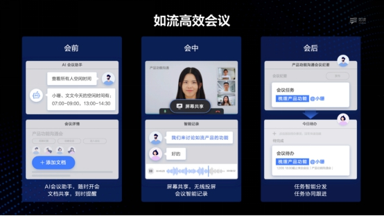 基于百度技术领域的深厚底蕴,通讯流方面,如流为用户打造了AI时代触手可得的连接体验。例如在高频的会议场景中,如流覆盖会前、会中、会后全流程,一站式助力用户高效开会。会前,AI会议助手智能推荐会议时间,实现智能约会,文档共享方便与会人提前熟悉会议资料,到时提醒让用户不错过一场会议;会中,屏幕共享、无线投屏让远程演示交流更加简单高效,会议智能记录可录制完整会议语音,并在会后自动生成语音+文本的会议记录,方便回溯会议内容;会后如流还支持会议纪要任务同步待办事项等协作功能,真正实现高效会议。