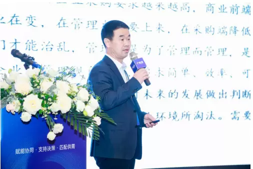 高小军就博源集团的数字化建设和从采购开始的数字化转型升级实践做了分享。他介绍,博源数字化采购的变革历程主要基于商业环境和数字化采购的内外因素,2014年,博源与隆道合作,加强了供应商的协同管理,并通过平台使采购业务公开化、透明化,实现了集中采购的管理目标。在随着市场需求的不断变化和新技术的迅速发展,隆道平台的各项功能也不断迭代升级,博源陆续开始利用其自动下单、框架协议加商城的采购模式,以及调价机制的配合,大大提升了整体的采购工作效率,实现更高阶段的降本。应用最新的采购理念,实现可视化采购,开启了博源集团数字化采购的新篇章。高小军强调,数字化采购平台建设要跳出传统信息化思维,打破ERP供应链管理、客户关系管理等独立的应用思维,避免信息孤岛,实现互联互通。从商业模式和业务流程出发,打通企业内部信息化系统、供应商系统、第三方的综合电商,以及行业平台平台,最终构建一个网络化、信息化、智能化的服务平台。