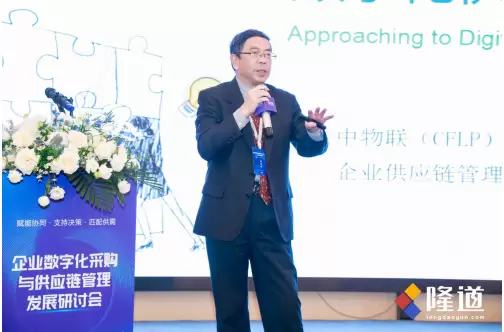 吴树贵以“采购和供应链数字化转型:研究心得和实践经验”为主题作分享。他说,供应链是一个客观的存在,是伙伴企业的协同作业模式;供应链管理则是对客观存在的理性认知,目的是为了提高全链协同效率和效益。供应链因全球化而发展,也因“逆全球化”和“疫情”而受挫,相对于宏观经济,供应链成了对企业影响更直接的“中观经济”,供应链伙伴企业一损俱损,必须高效协同才能形成良性竞争力。因此说企业是“微观经济”,供应链则是“中观经济”。吴树贵认为,供应链因生产满足需求的产品而构建,组织产品生产的企业,以提高质量和效率为目标,以整合产能和服务资源为手段,与各参与企业协同作业,满足客户需求并共同从中获益。吴树贵以隆道的数字化技术服务为例,结合采购和供应链管理数字战略变革深度分析了企业数字化转型升级的环境和要素。