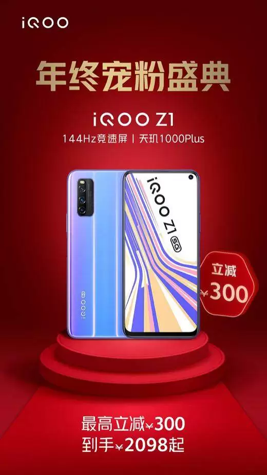 2020年12月10日,iQOO开启“年终宠粉盛典”促销活动,其中,备受欢迎的iQOO Z1最高立减300元,到手2098元起;iQOO Z1x最高立减200元,到手仅1598元起。此外,还有多重活动进行,参与即有机会得到多重礼品及“宠粉基金”。