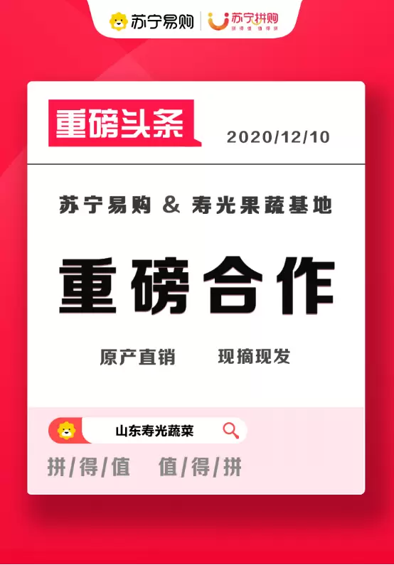 除此之外,与老百姓息息相关的农产品产业领域,苏宁也在马不停蹄地寻找合适的供应链伙伴。就在12月10日,苏宁助力农产品上行计划于山东寿光落地。这意味着,从寿光果蔬基地发出的新鲜果蔬,将会通过苏宁直接输送到全国消费者的手中。值得一提的是,苏宁作为助农电商领域的创新代表,已经在助力农产品上行上走出了一条苏宁村、中华特色馆场馆模型,酥田与五个农民品牌订制模型的矩阵创新道路,也为整个产业指明了新的发展方向。