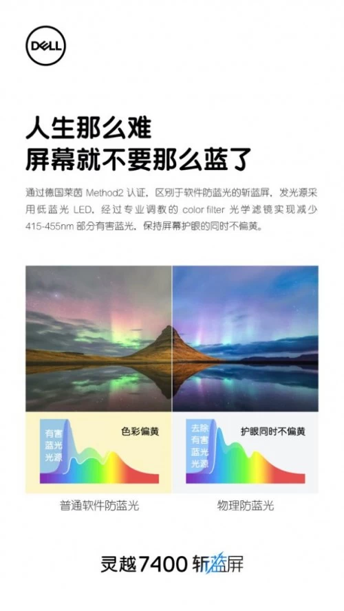 在屏幕护眼方面,戴尔灵越7400绝对是行业领先者。它搭载的“斩蓝屏”通过德国莱茵更专业的Method2认证,采用低蓝光LED发光源,从源头过滤415-455nm有害蓝光,守护孩子的视力、睡眠健康。同时,“斩蓝屏”还配备了专业调教的ColorFilter光学滤镜,避免屏幕偏黄现象,让孩子网课学习更清晰、更投入。对比市面上的防蓝光眼镜,以及软件防蓝光,“斩蓝屏”真正达到了“物理防蓝光,护眼不偏黄”的效果。