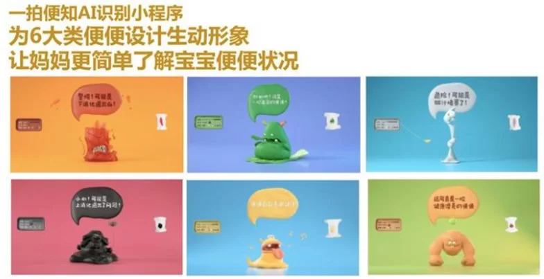 资料显示,百度营销携手美素佳儿打造的“一拍便知”小程序,根据医疗大数据和《阿姆斯特丹婴儿便量表》,从颜色、性状、变量三大维度进行分析,并设计了生动易理解的六大类便便形态,为新手爸妈提供科学的育儿指导;依托百度AI图片识别技术及智能小程序,新手宝爸宝妈用手机扫一扫便便,即可快速识辨宝宝的健康状态。