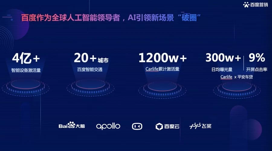 数据显示,百度AI能力在2020年迎来大爆发,小度智能设备激活量超过4亿,百度智能交通在全国20个城市落地,同时carlife激活超过1200万台车,基于此,百度营销依托AI技术从个人场景向家庭和交通等场景拓展渗透,加速营销场景“破圈”。