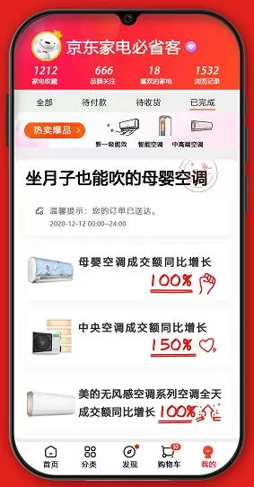 空调追求无风感,小范围控温"出圈"全屋换气。原来买空调都追求制冷速度,夏天进屋对着空调来个直吹感觉特爽,但之后的头疼脑热谁吹谁知道,查查"空调病"发现每条都能对上。现在买空调大家都知道除了控温速度,健康更重要。京东家电12.12销售数据显示,具备呵护母婴人群、主打柔和风的空调产品备受青睐,比如坐月子也能吹的母婴空调成交额同比增长100%,像美的无风感空调系列产品全天成交额同比增长100%。除了常见的以房间为单位小范围控温的空调,在全屋换新空气、保持健康空气流通的需求下,中央空调成交额同比增长150%。可见,空调产品今后的研发方向已经从单一的温度调节升级为全屋健康空气打造系统。