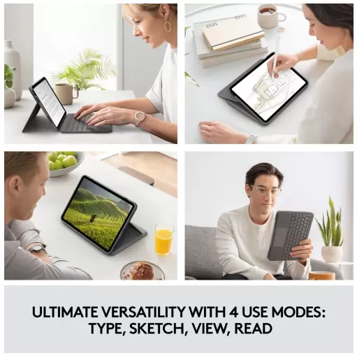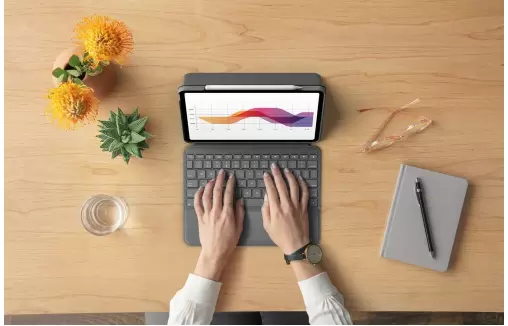 无论是打字、浏览、绘图还是阅读,FolioTouch都将成为您的多面助手,为高效办公加码。大背板稳固支撑,稳定地将您的iPad固定在桌面上;打开键盘,配合可提供约20°到约60°的可调节支架,FolioTouch还为您带来恰到好处的视觉角度,减轻打字过程产生的肩颈负担;将键盘折叠,您也可以享受一场影视盛宴,或者搭配罗技Crayon触控笔,进行一场属于您的艺术创作。