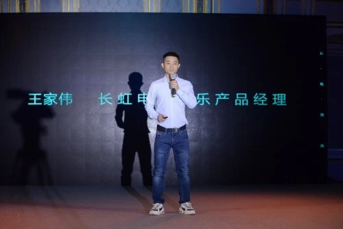 本次发布会现场模拟了现代化家庭场景与专业化音乐应用,并借助长虹的新品大屏技术营造了不同家庭场景下的音乐氛围感。长虹电器股份有限公司副总经理兼长虹·美菱中国区总经理吴定刚、酷狗音乐副总裁赵海舟与爱听卓乐副总裁丁纲分别就此次战略合作致辞。