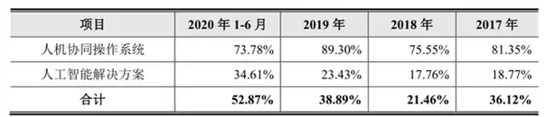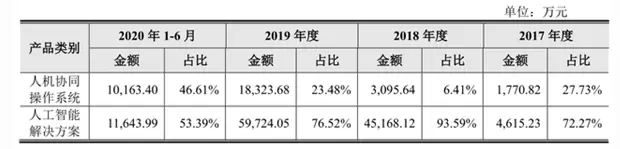 2018年,云从科技人机协同操作系统收入占比为6.41%,到2020年上半年,人机协同操作系统收入占比提升至46.61%,整体营收能力优秀,呈快速增长趋势之下。而人工智能解决方案业务营收占比从72.27%下降到53.39%。从营收可见,云从科技的人机协同操作系统已逐步进入收获期。