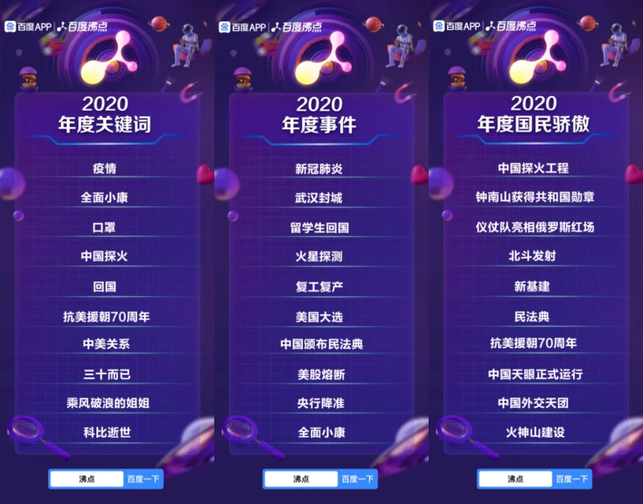 - 2020百度沸点榜单发布:疫情、全面小康、直播带货等关键词上榜