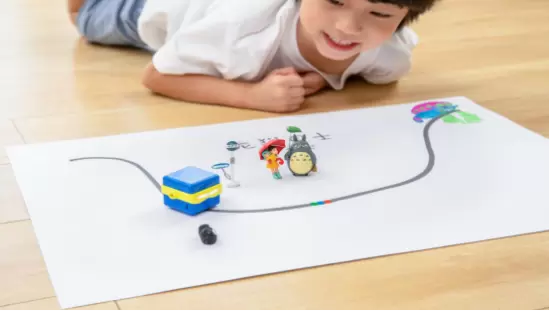 阿尔法蛋dodobot涂画机器人最显著的特点就是可以让孩子通过简单的涂涂画画就能学习到编程思维。孩子可以用四色马克笔随心所欲绘制地图,dodobot会分辨不同颜色的线条,并对颜色做出判断,通过不同颜色段的组合,dodobot就能完成不同的动作指令,比如红色左转、蓝色右转等。而涂画特定的颜色组合,例如红蓝绿,dodobot会去执行这个指令,有旋转、放屁、加速等等。孩子在娱乐的过程中逐渐掌握点线面的绘画基础思维以及启蒙编程思维。