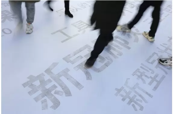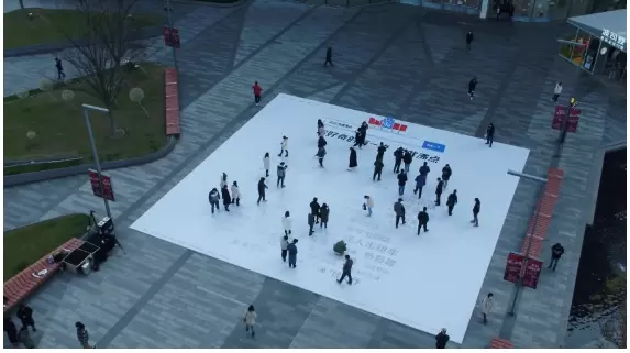 城市广场上的巨型白色地贴起初并看不出来有什么“玄机”,随着走过的人越来越多,大家发现,白色的地贴上开始浮现出各种词汇:口罩、探火、钟南山、庆余年、乘风破浪的姐姐、科比逝世……原来在白色的地贴下面藏着一个“2020百度沸点年度榜单”。