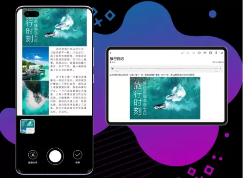 如果你有华为平板,还可以使用备忘录编辑协同功能。升级EMUI 11后,在同一局域网下登录同一华为账号,你就可以实现多设备对备忘录的同步操作。当你使用手机拍照,或文档扫描提取出电子版后,会立刻同步显示在平板备忘录中。这样一来,你就可以利用平板的大屏幕来编辑文档了,还可以搭配触控笔与智能磁吸键盘来辅助输入,进一步提升办公效率。