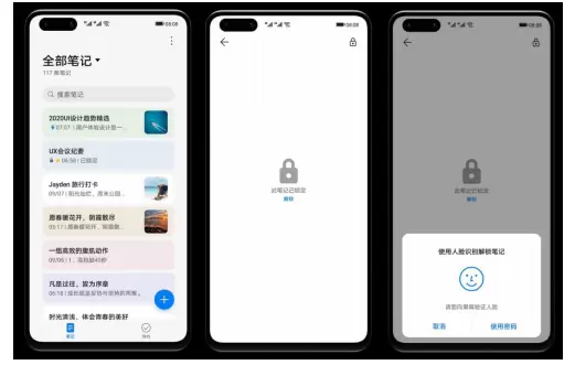 在工作中涉及商业机密的文档,存在手机中你是否觉得安全性不足?不如试试EMUI 11的备忘录隐私加密保护功能。你可以选择单条备忘录进行上锁,只有自己能够通过密码、人脸扫描或指纹扫描等验证方式解锁查看。以后在你需要给同事或朋友共享信息的时候,可以安心将手机递给他们,防止他们不小心翻看导致的隐私泄露。