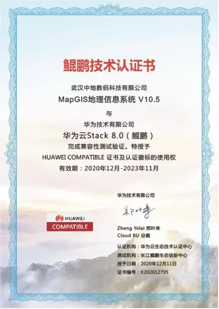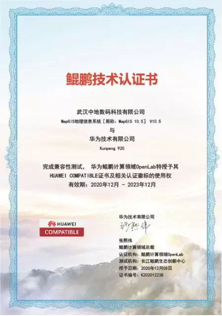 日前,由中地数码与长江鲲鹏生态创新中心共建的长江鲲鹏MapGIS地理信息系统联合实验室正式成立,秉承开放、务实、共赢的生态建设理念,推动信创行业快速发展。基于联合实验室,中地数码MapGIS 10.5与华为Kunpeng 920、华为云Stack 8.0(鲲鹏)、华为云鲲鹏云完成兼容性测试技术认证,测试结果表明:中地数码MapGIS 10.5地理信息系统与华为Kunpeng 920、华为云Stack 8.0(鲲鹏)、华为云鲲鹏云服务兼容性良好,且稳定运行,性能卓越。