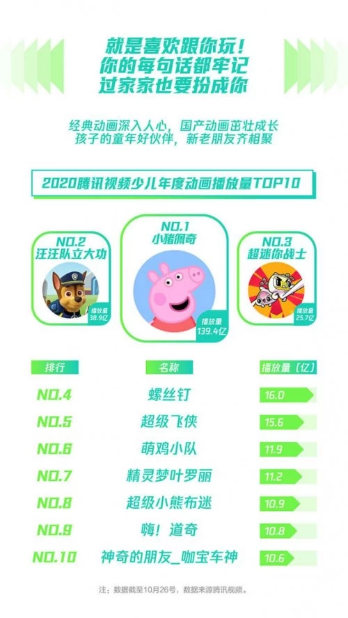 面对愈发庞大的儿童市场,国产少儿动画加速品类扩充,全面茁壮成长。在今年指数报告的少儿动画年度播放量榜单中,经典IP仍占领少儿动画的头部位置,与此同时,《超迷你战士》《超级小熊布迷》《神奇的朋友_咖宝车神》等国产新动画也受到家长和孩子的热烈欢迎。