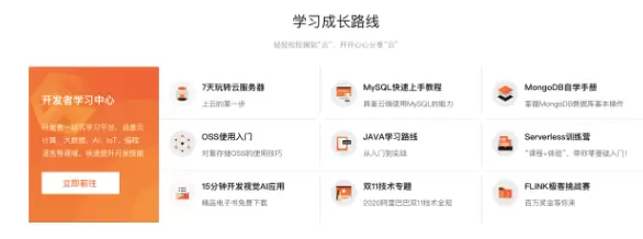 而阿里云“开发者成长计划”提供的云上开发者学习中心则涵盖各类云计算、大数据、AI、IoT、编程语言等领域专业课程。专业级的学习成长路线为更多开发者提供了在线系统学习并快速提升开发技能的机会。