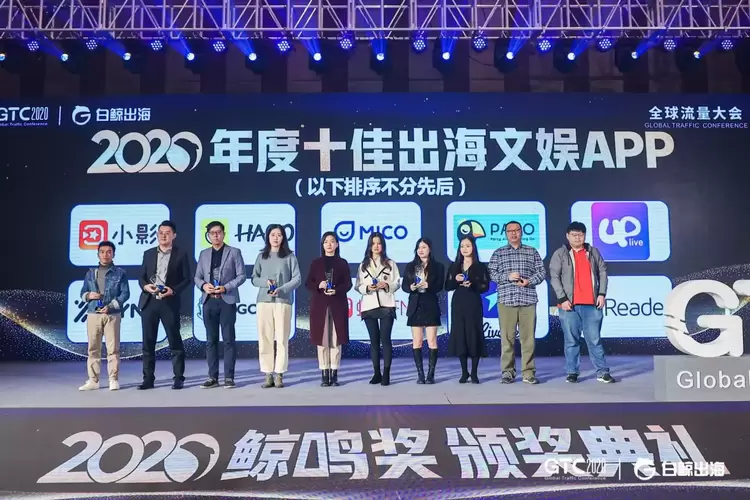 获得2020年度十佳出海文娱App的企业有:Bigo Live、蜻蜓FM、MICO、LiveMe、ZYNN、Uplive、HAGO、PAGO、小影、iReader。