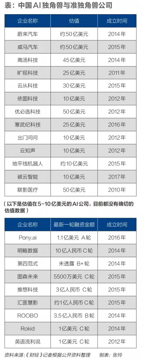这是AI领域一个典型的独角兽养成故事——强大技术背景的创始人团队,投资人争相追捧,短时间内估值快速攀升。目前,中国AI领域已经有13家估值超过10亿美元的独角兽。
