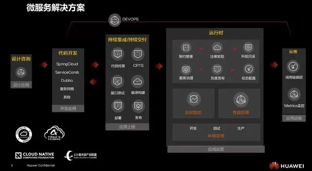 面对这样的挑战,华为云早就有所准备,从解决实际问题出发,拿出一套全流程的解决方案,即从应用上线到版本迭代到日常维护, 包括ARM支持、灰度发布、限流、熔断、容错、负载均衡等领域的深厚技术沉淀,为企业提供从设计咨询、代码开发、持续集成/持续交付、应用运营以及应用运维的一站式微服务解决方案。