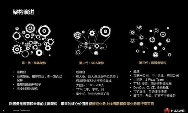任何一项技术都是有发展历史的,微服务也不例外。沙龙现场,华为云微服务高级工程师李昂从宏观角度解读了微服务的发展史,他表示,微服务的架构演进经历了第一代单体架构、第二代SOA 架构、第三代微服务架构。
