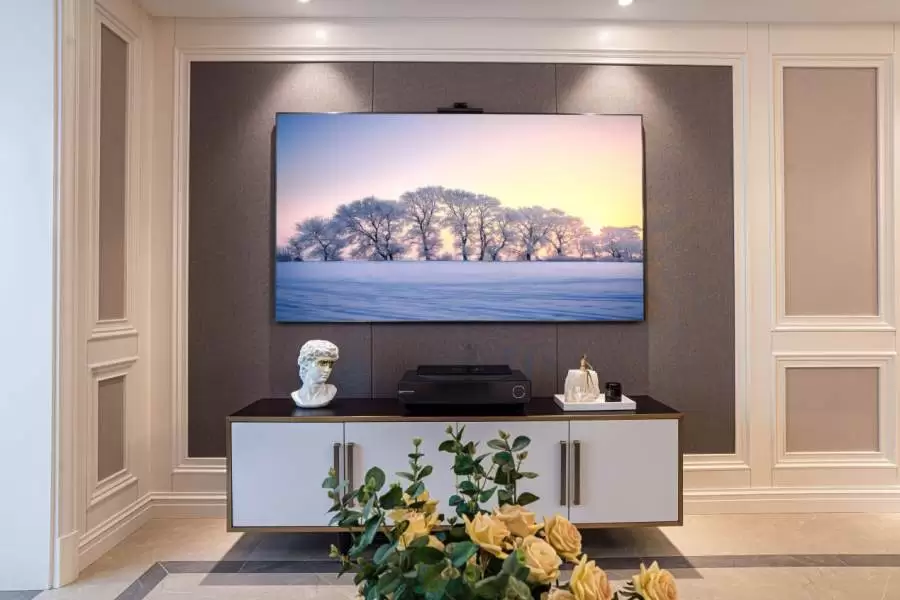 近年来,电视产品的智能性越来越突出,作为电视市场中的年轻品类,激光电视也毫不示弱——5G、AI等创新技术的发展驱动下,海信激光电视在2020的结尾也来了一个“智能大变身”。11月底发售的新品海信激光电视75L9F,增添了更加智能的AI摄像头,和AI远场语音。不仅如此,在画面显示上海信激光电视75L9F也有了新的提升。