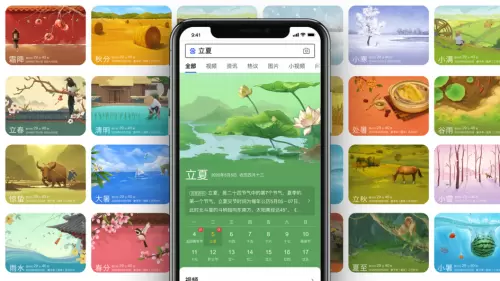 除了对产品的赋能,百度设计团队立足国民精神文化需求,从传承和弘扬中华优秀文化出发,将中国传统工艺和文化故事视觉化,并与用户使用场景相结合。例如中国传统节气的搜索卡片,通过传统绘画技法结合文化溯源让用户更简单、生动的获取信息的同时,对传统节气文化有了更准确的认知和理解,体现了浓浓的人文关怀。