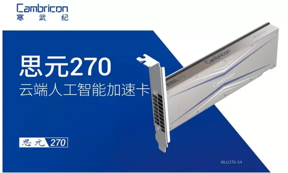 其中寒武纪推出第二代云端AI芯片思元MLU270及云端智能加速卡,速度更快、功耗降低到75w,与英伟达(Nvidia)发布的Tesla T4基本持平。