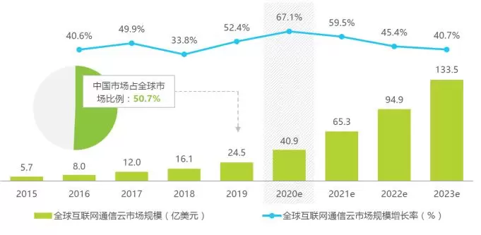 这在艾瑞报告中也有非常明确的体现。报告称,疫情影响下,用户对在线应用的需求激增带动了企业在各类场景,如在线教育、在线庭审、金融面签等对通信云服务的使用量,预计全年全球互联网通信云市场将实现67.1%的同比增长。