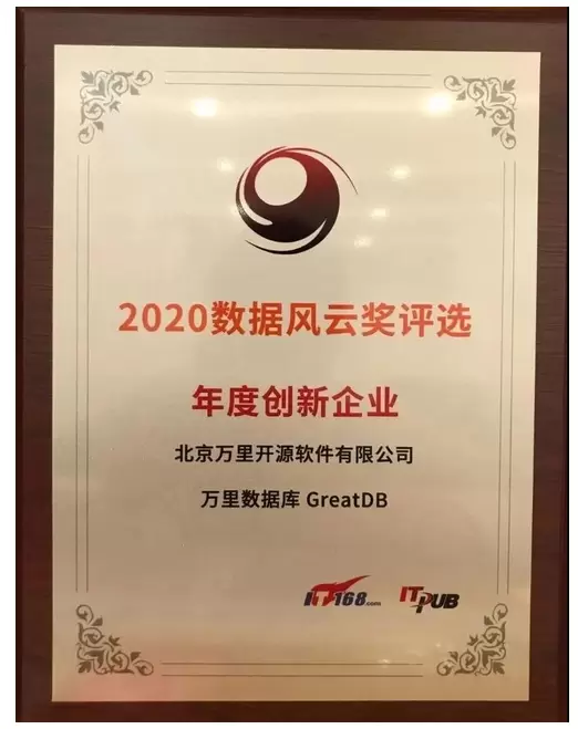 由于万里数据库在新一代分布式数据库方面的创新突破,在中国数据库技术大会主办方发起的“2020数据风云奖评选”中,万里数据库荣膺“年度创新企业”奖。