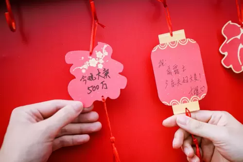 此次线下选品会设置了新颖的互动玩法。在打卡送福气玩法中,参会嘉宾签到后领取祈愿符,写下参与此次选品会的目标愿望,并拍照发到朋友圈,满足条件后即可领取精美礼品,为生态伙伴的选品目标提供曝光,增加对接机会;心仪互投环节则是参会嘉宾在深度交流后,商家可为心仪的机构和达人投票,机构和达人则可通过问卷系统为商家投票。