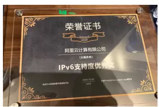 2020年12月22日,云服务IPv6支持能力和IPv6 Ready/Enabled先锋奖颁奖仪式在南京GNTC 2020全球网络技术大会上隆重举行。阿里云计算有限公司和优酷信息技术(北京)有限公司分别获得云服务和应用IPv6支持度大奖。