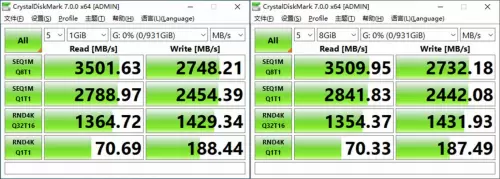 高端旗舰K580则可以达到3501/2748 MB/s的连续读写速度,8GiB文件设置下,保持了同样的性能水平。其他线程的性能表现同样可观。