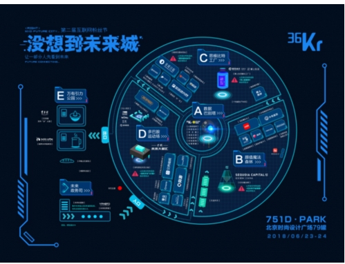 6月23-24日,36氪第二届互联网粉丝节——“没想到未来城”强势登陆北京。现场设置了未来之芯、颜值森林、思维比特工厂和多巴胺游乐场四大区域,以美图美妆、贝壳租房为代表的七十多个品牌齐聚未来城,共同揭开了未来科技的神秘面纱,让活动参与者通过游戏互动提前登陆了未来世界。