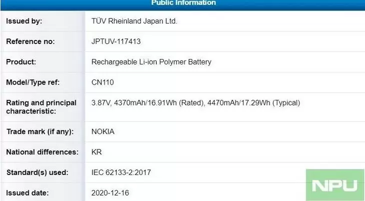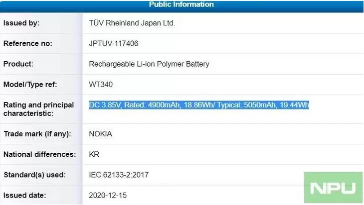 两项认证都是最新的认证,可显示容量为 4500 mAH 的 CN110 电池和容量为 5000 mAH 的 WT340 电池。认证表明它们都将支持快速充电并且属于诺基亚智能手机系列。