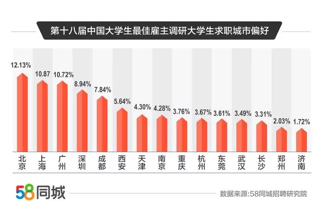 58同城发布中国大学生最佳雇主报告:二三线城市就业热度升温,求职者期望月薪7236元