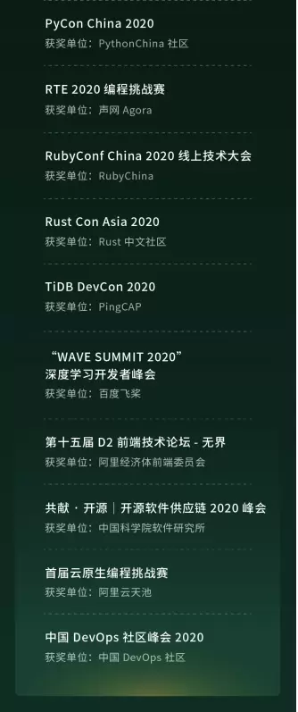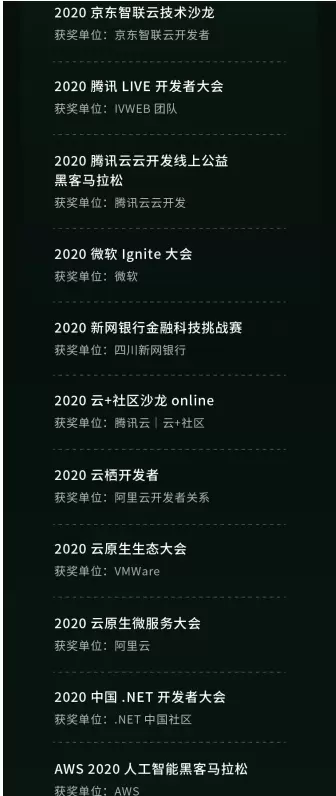 附 2020 中国最受开发者欢迎的技术活动榜单