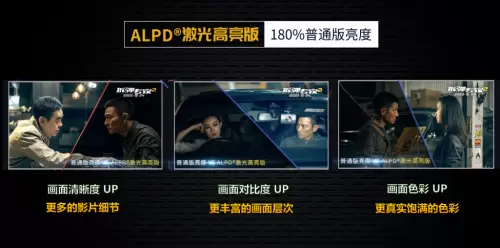 高亮,顾名思义更亮,ALPD®激光高亮版是普通版本亮度的180%。但它仅仅是高亮吗?不!远不止这么简单!拜光峰科技ALPD®激光光源的特殊性所赐,在经过后期特殊的处理后,我们看到的影片会更加清晰,色彩更加真实。