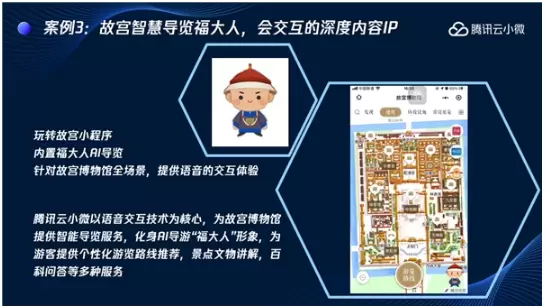 例如,在玩转故宫小程序内的智能导览“福大人”,针对故宫博物馆全场景构建了一个知识库,并在深度学习的技术基础上,对数据进行逻辑分析,快速更新、自主学习,以实现知识库的迭代优化,由此能够及时为用户提供个性化游览路线推荐、景点文物讲解、百科问答等服务。