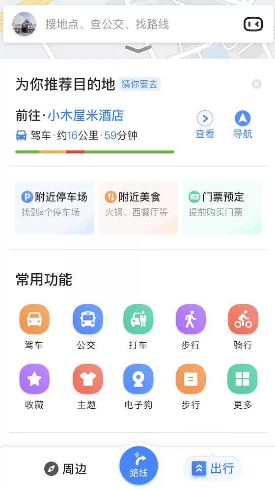 打好精准的基础,地图导航则要向着智能化方向进阶。为给用户带来更加个性化的服务体验,百度地图打破常规首页设计,创造性推出智能首页功能。智能首页覆盖智能通勤规划、公交提醒能力、精准目的地行程推荐、异常天气出行规划、个性化出行常用功能推荐、地点探索实时决策六大核心场景,能够结合用户的使用偏好和出行特点,形成“千人千面”的个性化首页操作面板。如在打车爱好者的首页面板中,打车、订单等功能将出现在前列,而习惯乘坐公交的用户,将在打开首页时优先看见公交运行动态。此外,智能首页还提供天气提醒、定制行程、去处推荐等功能,为用户时刻贡献出行“好主意”,给予私人助理般的贴心服务。