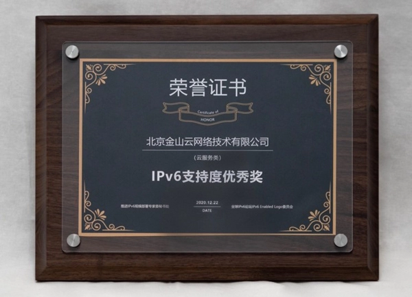 金山云荣获“IPv6支持度优秀奖” 全系列云产品已具备IPv4/IPv6接入能力