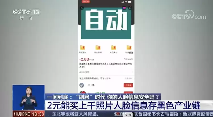 最可气的是,在自己眼里珍贵重要的人脸数据,在网络黑市上被售卖时却相当不值钱。央视10月报道称,在某些网络交易平台上,只花2元钱就能买到上千张人脸照片,而且全都是真人照。