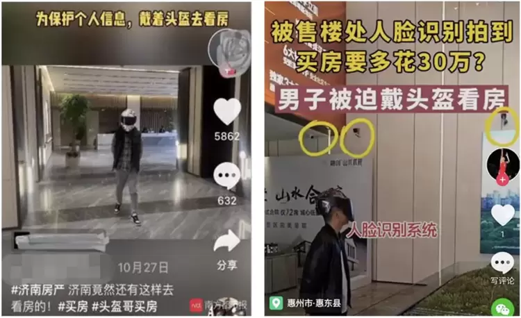 类似案例屡见不鲜。2020年9月,广西南宁十几名业主因刷脸认证漏洞,被黑中介过户房产骗了超千万元;为了避免被售楼部采集人脸信息,购房者被迫“戴着头盔去看房”。