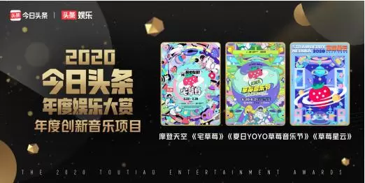 音乐方面,创新力仍在驱动行业前行,摩登天空在2020年突破传统音乐内容分享模式,成功打造出「宅草莓」「夏日yoyo草莓音乐节」「草莓星云」等创新音乐项目,迈出了定义线上音乐内容的成功一步,为音乐领域未来发展提供了新方向。于此,2020今日头条年度娱乐大赏「年度创新音乐项目」荣誉由摩登天空获得。