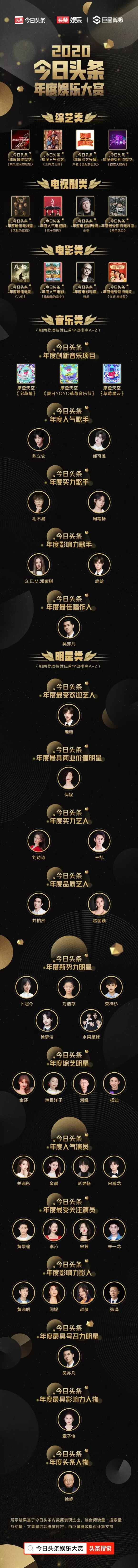可在今日头条内搜索【今日头条娱乐大赏】或点击链接 ,查看完整奖项及相关内容。