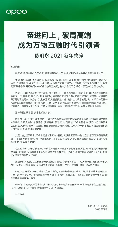 OPPO陈明永:2021年破局高端 跻身全球高端旗舰第一阵营