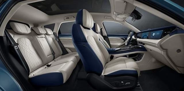 车辆启动后,三联屏自动升起,氛围灯点亮,三屏联动,驾控、娱乐信息一览无余。看得见的仪式感,为用户营造温暖、智能、优雅的人机交互体验。同时还支持4种手势交互、四音区语音识别、触屏,Touch Pad、实体按键五种交互功能,人车交互更加安全、高效、快捷。