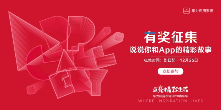 在华为应用市场2020嘉年华中,华为应用市场线上发起了「说说你和App 的精彩故事」有奖征集活动,邀请广大用户参与话题互动:#手机里不想卸载的App#、#好用冷门的宝藏App#、#App对我生活习惯的改善#、#让我印象深刻的App界面设计#,以及“应用点亮生活”主题征文,聚焦于App带来的生活改变,倾听更多用户的声音。