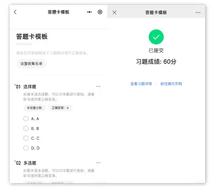 具体而言,一方面老师们可以使用在线试卷功能,基于题库或线下作业生成在线测试/答题卡,学生提交后系统可自动判分,并可将成绩直接导出到在线表格中直观地展示,免除手动统计的成本,进一步提升了老师批改试卷的效率。另一方面,当开展线上远程教学时,老师们可以选择腾讯文档在线PPT功能,导入课件后快速发起演示及语音通话,配合激光笔还能实时掌握讲解重点信息,完全可以摆脱设备及空间距离的限制问题。